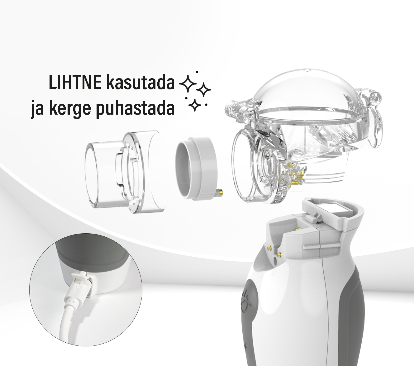 Ravimimahutit saab lihtsa vaevaga paigaldada, eemaldada ja lahti võtta, mis muudab toote hooldamise kergemaks. Tänu eemaldatavatele otsikutele on seda seadet lihtne lahti võtta, puhastada ja desinfitseerida. See on kompaktne ja kasutab USB-kaabliga laetavat akut.
