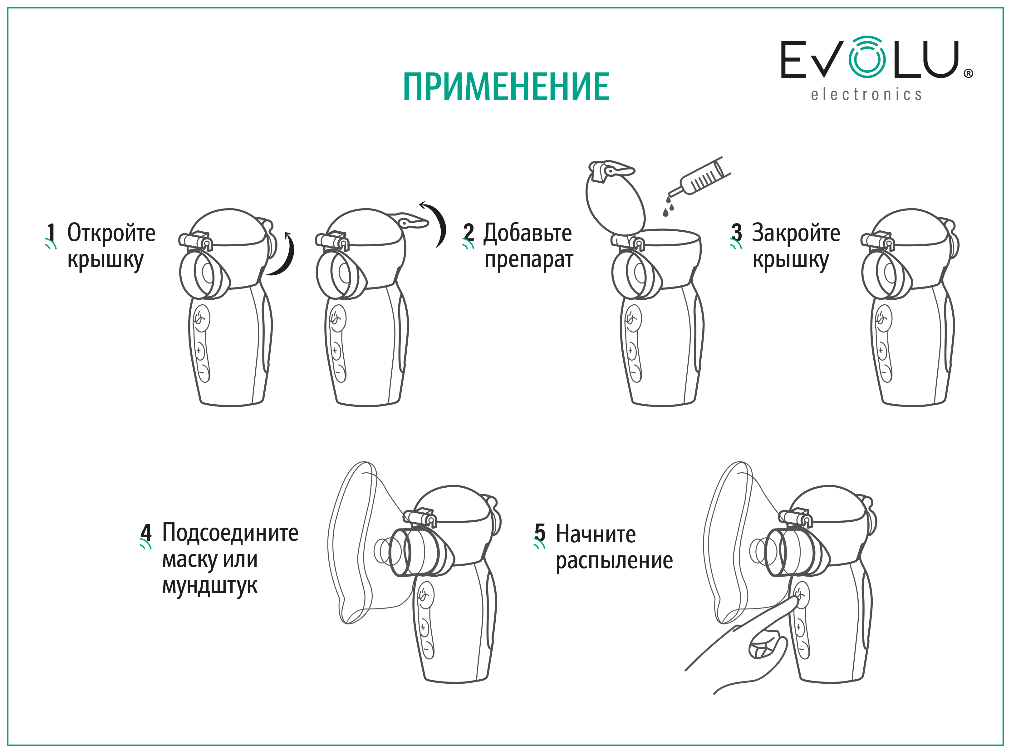 EVOLU NANO AIR PRO - небольшое, бесшумное и легкое устройство. Добавьте лекарство в лекарственную чашу, и устройство готово к применению! Его можно носить с собой и использовать где угодно.